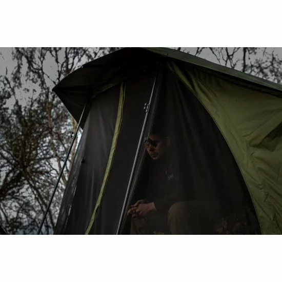 El panel de insectos ofrece visibilidad sin restricciones desde el bivvy, ventilación adicional y permite que entre más luz en el refugio. También cuenta con correas de montaje en la puerta y el panel lateral, lo que permite su uso en la posición abierta