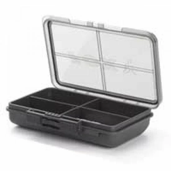 Esta caja integral tiene cuatro compartimentos iguales y cabe en una F-Box Mediana y Grande. Perfecto para almacenar material más grande, como clips de seguridad, gomas traseras y tubos termorretráctiles. La caja tiene una tapa impermeable, bisagras de larga duración y un cierre deslizante fiable.