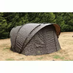 Mecanismo de ahorro de espacio para espacio adicional para la cabeza Cuatro costillas descansan en el suelo para mayor estabilidad Solapas laterales extendidas para mayor protección contra los elementos Canalón de lluvia en la parte delantera para drenaje de agua Poste central corto para una colocación fácil y rápida postes) Cremallera completa en la parte delantera para un panel de relleno de la serie R opcional, un panel de extensión o Mozzy (se vende por separado) Resistencia al agua 000 HH Sábana liviana de tamaño completo Ancho 262 cm, profundidad 178 cm, altura 128 cm Peso: 7,5 kg Tela: 100 % poliéster.