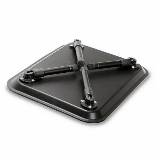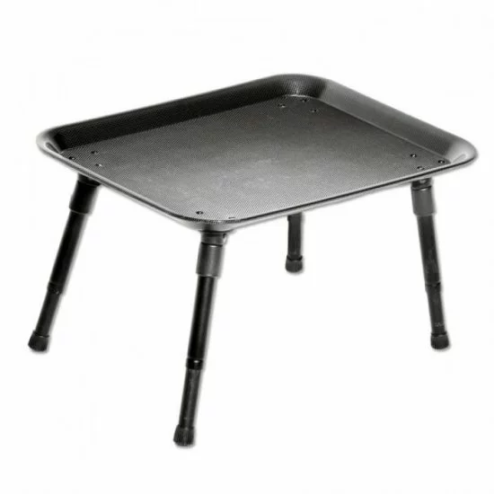 Handy Trakker Carbon Effect Bivvy Table. Todas las patas son totalmente ajustables, plegables y equipadas con pies de goma. La mesa está acabada con un efecto de carbón negro muy bonito.
