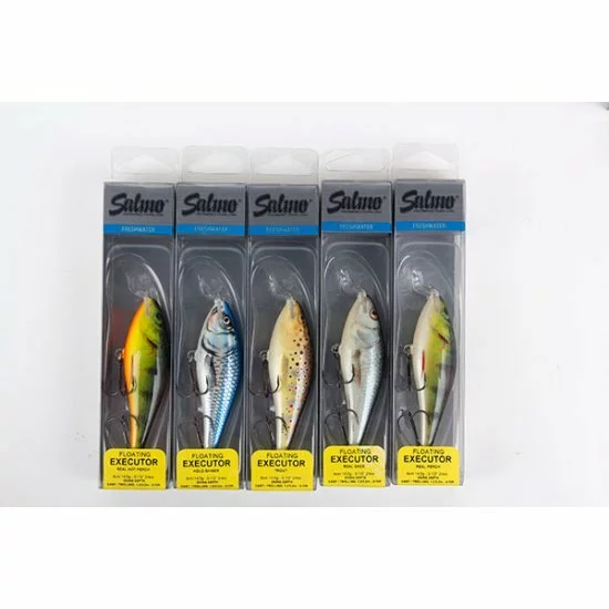 El Salmo Executor es una delicia para el pescador tradicional con señuelos. El modelo probado y la acción suave harán que todos quieran probar el Ejecutor. El Shallow Runner se puede pescar justo debajo de la superficie del agua mediante la pesca de choque. Mediante el curricán a velocidades variables se pescan profundidades de uno a cinco metros y ahí es donde suelen localizarse los peces depredadores. Disponible en cuatro tamaños diferentes. ¡Para todas las especies de peces depredadores, desde la perca hasta el lucio!
