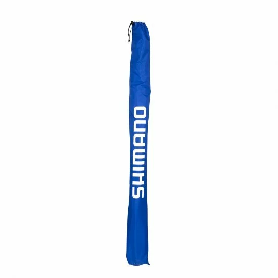 Paraguas azul Shimano de nailon de 50 pulgadas con el robusto sistema Lock. Para ser fijado en el suelo con las piquetas suministradas.